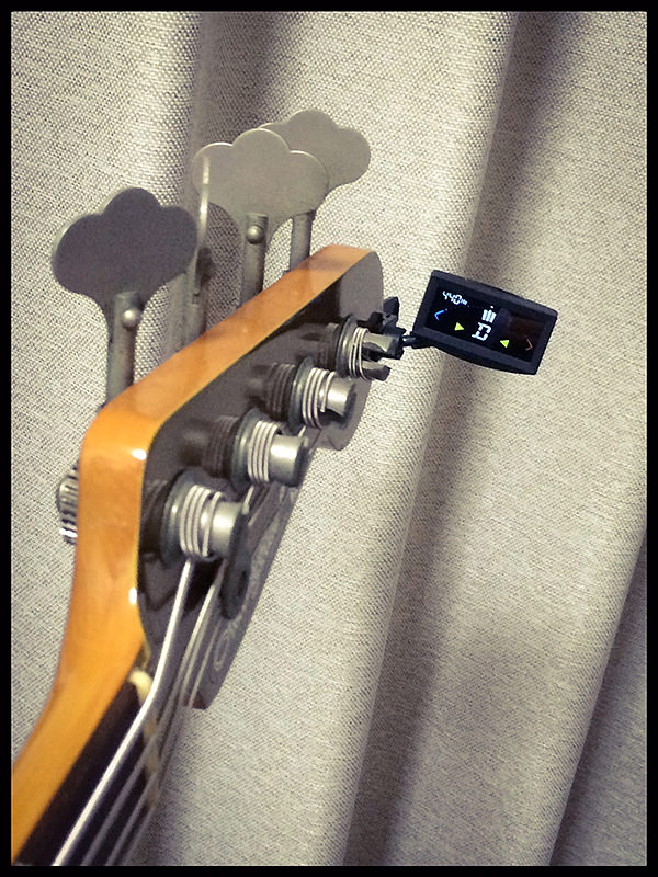 今まではベーストレーナー内蔵のチューナーを使っていたけど、ジャズベースとBB2000はそれぞれ別の部屋に置いてあるので、手軽に外して持ち歩けるから便利です。